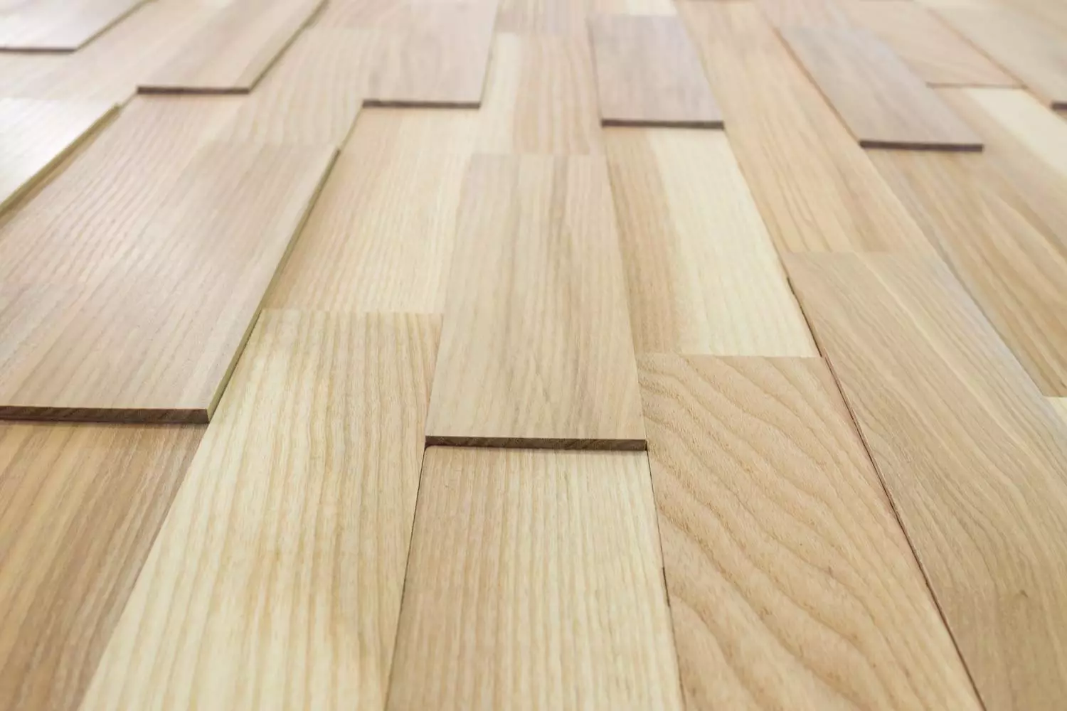 Naturel, poncé : La surface est poncée de manière lisse en surface et non traitée. Cela donne aux panneaux muraux la couleur authentique du frêne naturel.